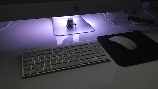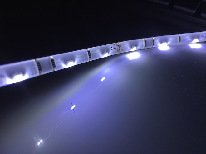 LED pásek s USB má délku 30cm, můžete jej stříhat a navíc je napájen USB, díky čemuž se zapne v momentě kdy zapnete/probudíte počítač a v momentě kdy jej vypnete nebo uspíte se USB pásek opět vypne. Pokud si tedy chcete udělat trošku radosti, stačí investice okolo 150Kč a můžete mít podsvícený například váš iMac.