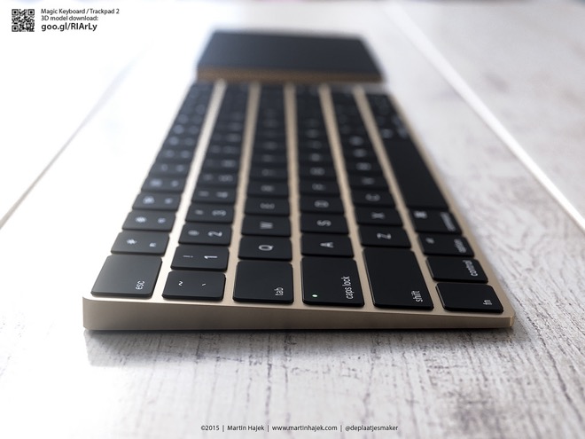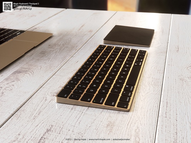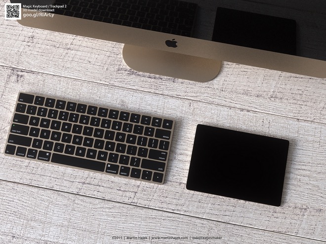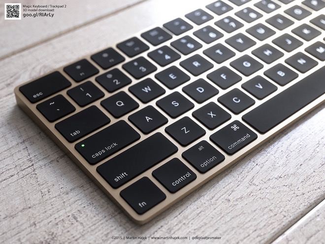 Před několika týdny představil Apple novou Apple Mouse 2, kterou už testujeme v redakci, Magic Trackpad 2 s technologií Force Touch a Magic Keyboard se zcela novou technologií kláves a dobíjecí baterií, kterou ostatně disponují všechny zmíněné produkty a nejpraktičtější je u Magic Mouse 2. Apple ale opět všechny tři vyjmenované produkty prodává v minimalistické bílé variantě, ovšem poslední dobou ukazuje, že se v případě jablečných počítačů nebojí ani dalších barev, jako je Space Gray a Gold po vzoru iPhonu. Tudíž nastává otázka, jak by vypadalo nové příslušenství například ve zlaté variantě?