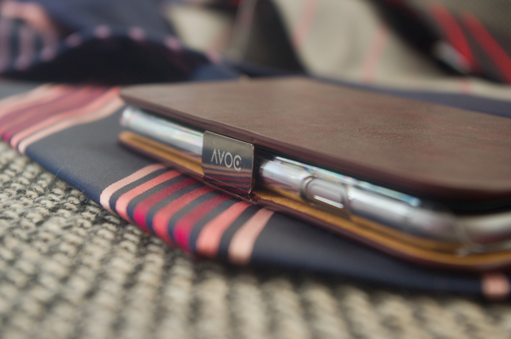 Výrobce šikovně využil místo v levé vnitřní části pouzdra, jelikož tam umístil kapsičku, do které můžete vložit třeba kreditní kartu nebo papírové peníze. Zajímavým detailem pouzdra je magnetický plíšek, který drží přední a zadní stranu krytu u sebe. Musím říct, že se mi tento detail s vyvedeným nápisem AVOC opravdu líbí, jelikož pouzdru dodává jakousi exkluzivitu. Navíc výrobce sílu magnetu opravdu vychytal, takže je dostatečně silný, aby u sebe obě části obalu udržel, ale na druhou stranu bez problému vnitřní stranu odklopíte.