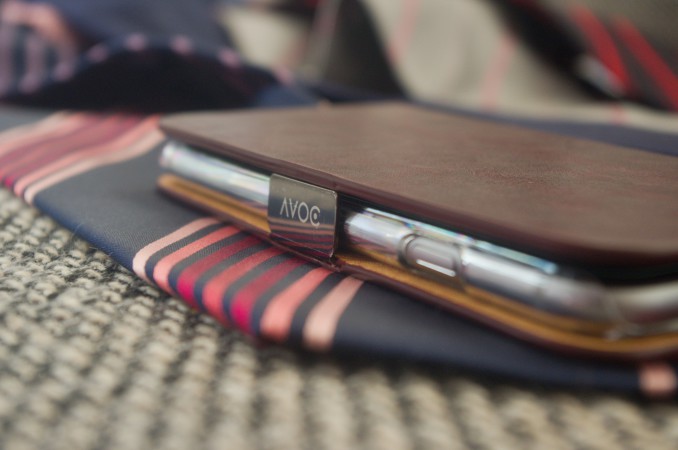 Výrobce šikovně využil místo v levé vnitřní části pouzdra, jelikož tam umístil kapsičku, do které můžete vložit třeba kreditní kartu nebo papírové peníze. Zajímavým detailem pouzdra je magnetický plíšek, který drží přední a zadní stranu krytu u sebe. Musím říct, že se mi tento detail s vyvedeným nápisem AVOC opravdu líbí, jelikož pouzdru dodává jakousi exkluzivitu. Navíc výrobce sílu magnetu opravdu vychytal, takže je dostatečně silný, aby u sebe obě části obalu udržel, ale na druhou stranu bez problému vnitřní stranu odklopíte.