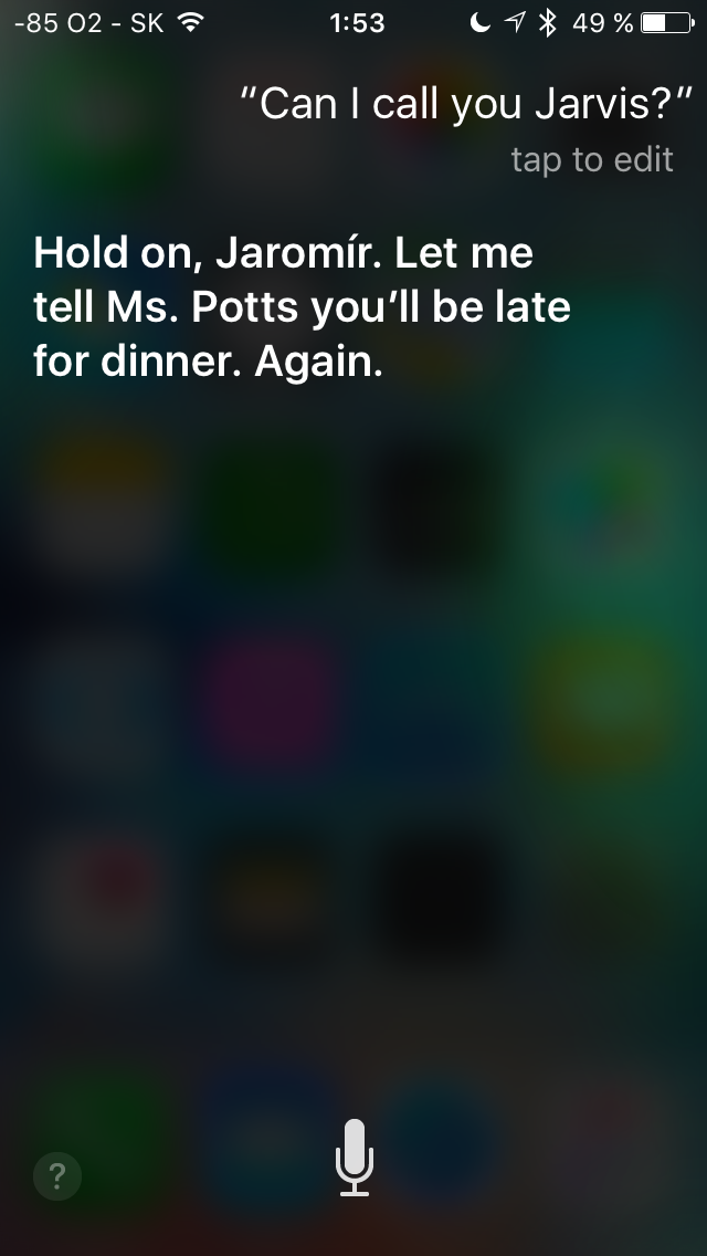 Určite to skúste a dostanete naozaj originálne odpovede, v ktorých nechýbajú narážky nielen na JARVIS, ale aj na pána Starka a na jeho asistentku Pepper Potts. A možno sa stretnete aj s veľa ďalšími odpoveďami, Siri vyberá odpovede naozaj náhodne a kým niektoré budete počuť často, iné budete počuť naozaj ojedinele. Je to teda len o náhode ale verím, že sa vám to bude páčiť. Mimochodom, Siri naozaj beží na infraštruktúre, ktorá sa volá JARVIS.