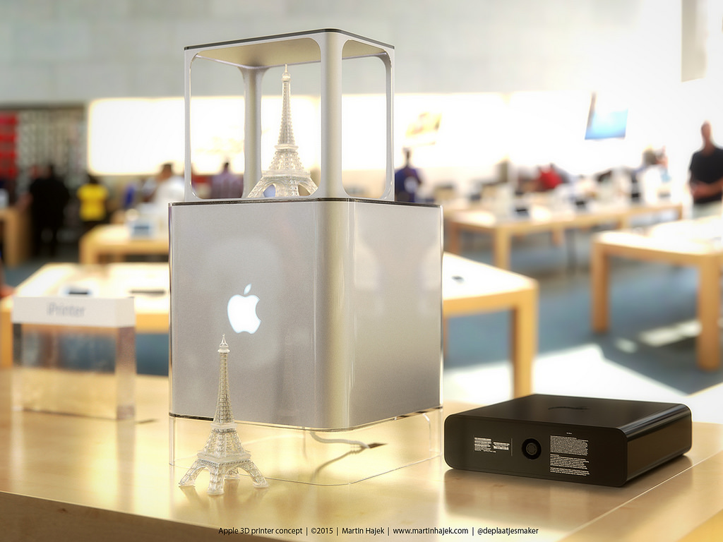 Martin se zamyslel nad tím, jak by to vypadalo kdyby Apple přišel s vlastní 3D tiskárnou a dokonce jej napadlo, že by Apple mohl pomocí iTunes App Store prodávat modely, které byste si mohli na tiskárně následně vytisknout. Podívejte se sami, jak by mohla Apple iPrinter vypadat a samozřejmě navštivte i Martinovu stránku martinhajek.com, aby měl radost.