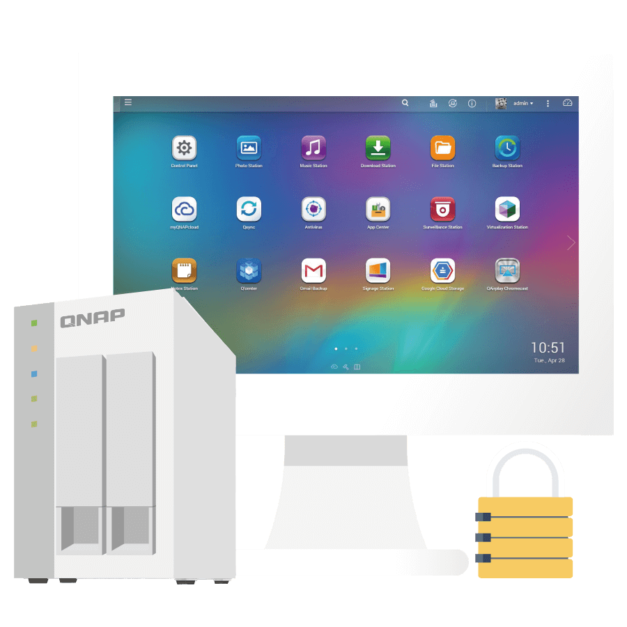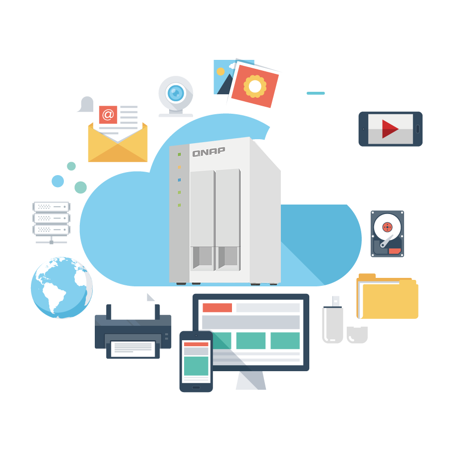 QNAP NAS je Váš centrální úložný systém s větším počtem pevných disků, které jsou nepřetržitě online a dostupné neustále a odevšud. QNAP NAS, založený na elegantním a intuitivním operačním systému QTS, je Váš snadno použitelný, přizpůsobitelný osobní server vybavený širokou škálou řešení, k nimž patří například velmi užitečný správce souborů, správce zálohování, správce stahování, přístupová práva, multimediální centrum a mnoho dalšího! To vše lze provést i bez komplikovaných znalostí informačních technologií. Jediný QNAP NAS dokáže kouzelně zjednodušit Váš život.