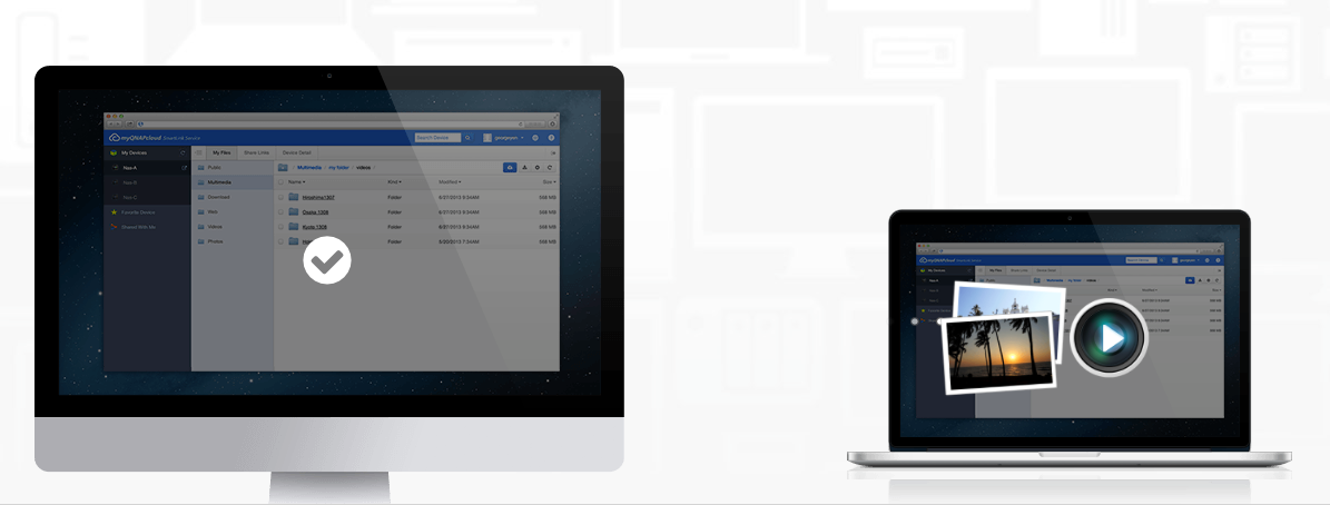 myQNAPcloud je jednoduchá a výkonná služba s mechanismem autentizace QID navrženým tak, abyste mohli bezpečně sdílet svá osobní data a soubory. Nyní máte pohodlnou alternativu ke sdílení svých fotografií a videí se svými rodinami a přáteli.