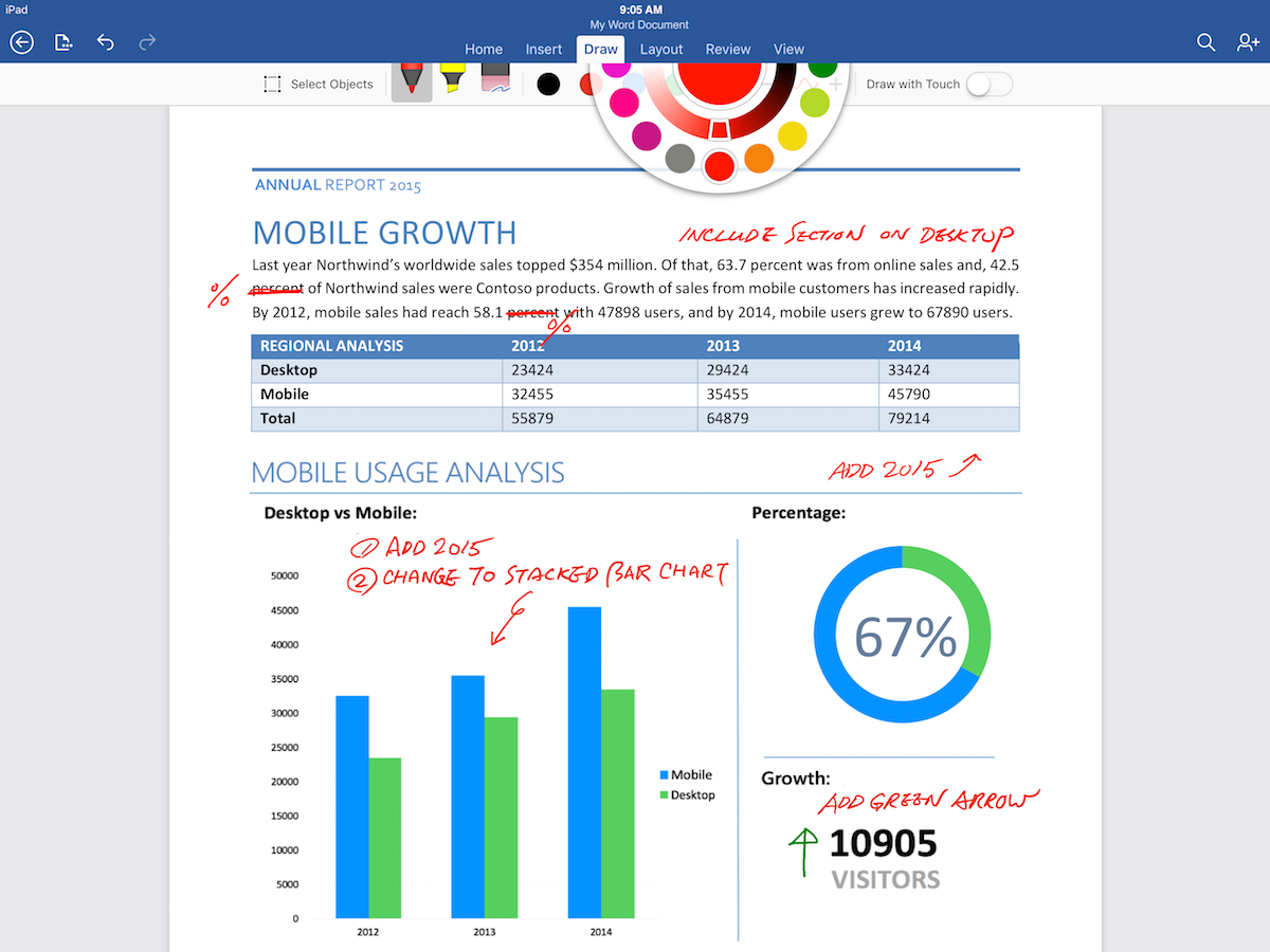 Microsoft dnes vydal dlho očakávanú aktualizáciu sady Office pre iOS, ktorá so sebou priniesla podporu Apple Pencil pre iPad Pro, vďaka čomu ju budete môcť konečne používať tak, ako to Microsoft a Apple prezentovali pri predstavení tabletu. Funkcia je dostupná na všetkých iPadoch a nepodporuje tak len Apple Pencil, ale aj bežné stylusy a prsty. Možnosť kresliť nájdete v sekcii Draw vo všetkých troch updatovaných aplikáciách, menovite Word, Excel a PowerPoint. Kreslenie je možné využiť buď na ručné písanie, kreslenie alebo aj na zvýraznenie či dopisovanie poznámok k jednotlivým oblastiam dokumentu. Podobne ako Preview na Macu, aj Office teraz dokáže premeniť nakreslené čiary na bezchybné geometrické tvary.