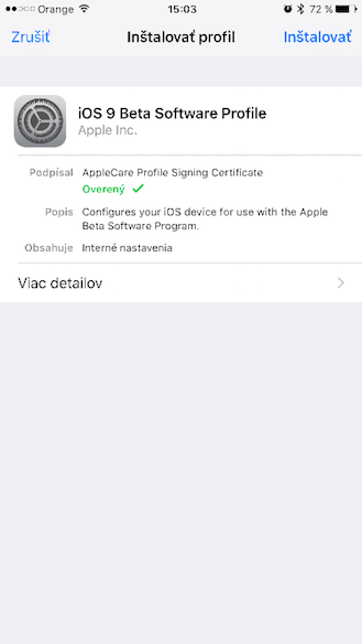 Ja jsem ten profil vymazal. Mam iOS 9.3 a bez profilu ?