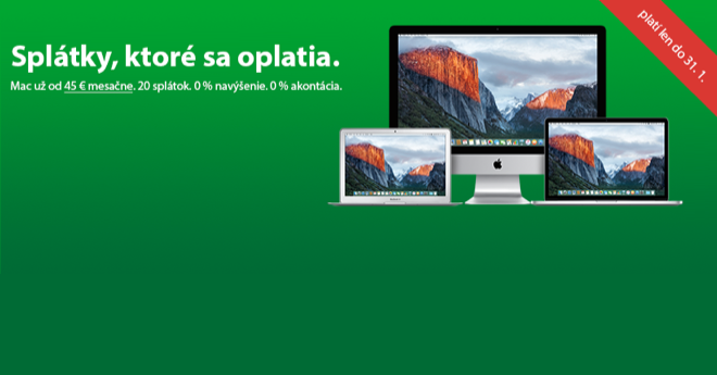 Tisková zpráva: V iStores zítra končí jedinečná akce „Splátky, které se vyplatí,“ v rámci které si můžete zakoupit MacBook Air, MacBook Pro s Retina displejem a iMac 27″ s Retina 5K displejem za nejvýhodnější cenu, a to i na splátky bez akontace a navýšení.