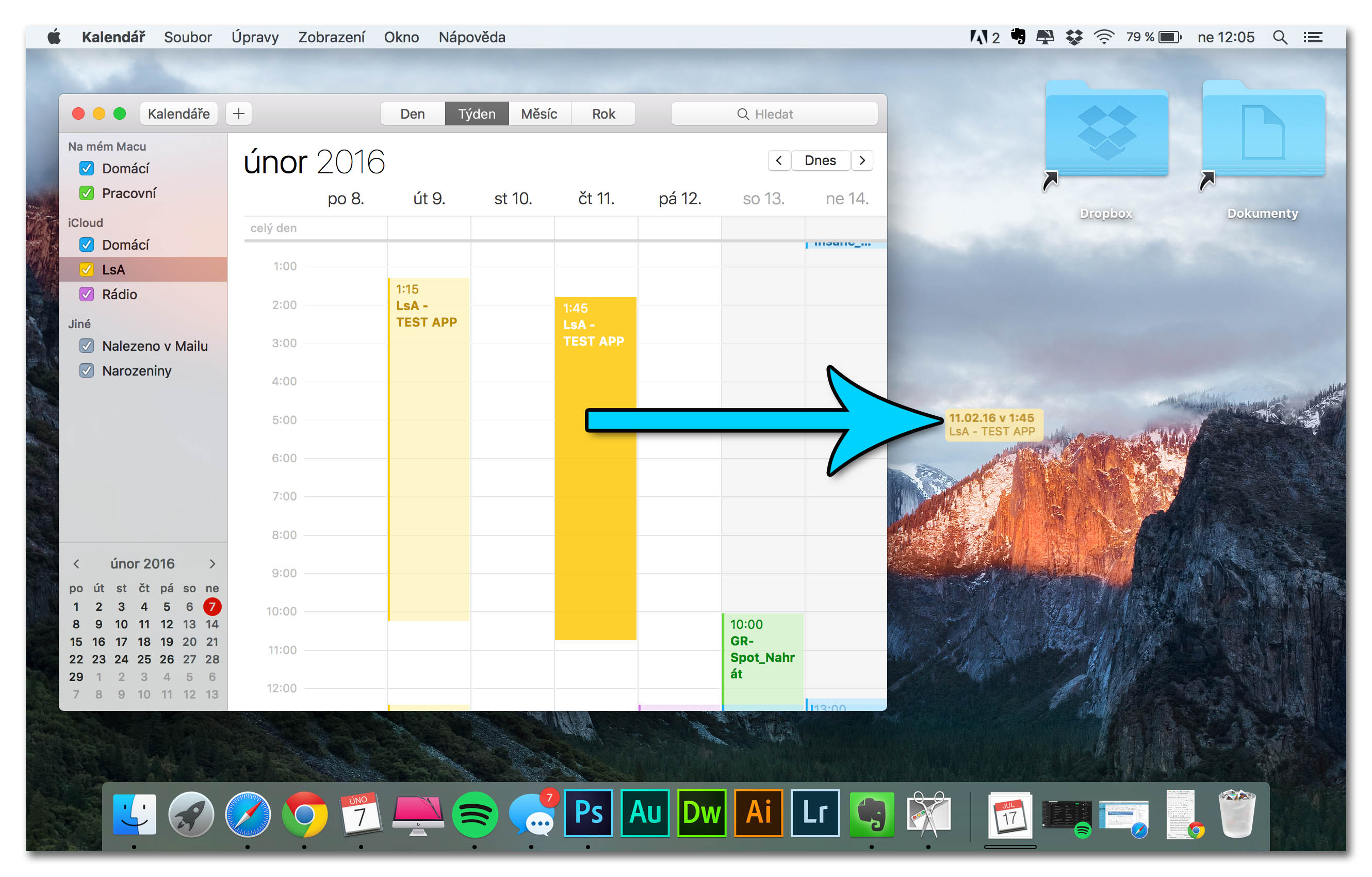 Chete-li stále mít událost na očích, Kalendář nabízí možnost přidat událost jako ikonu na plochu. Jak na to? Jednoduše událost přetáhneme na plochu.