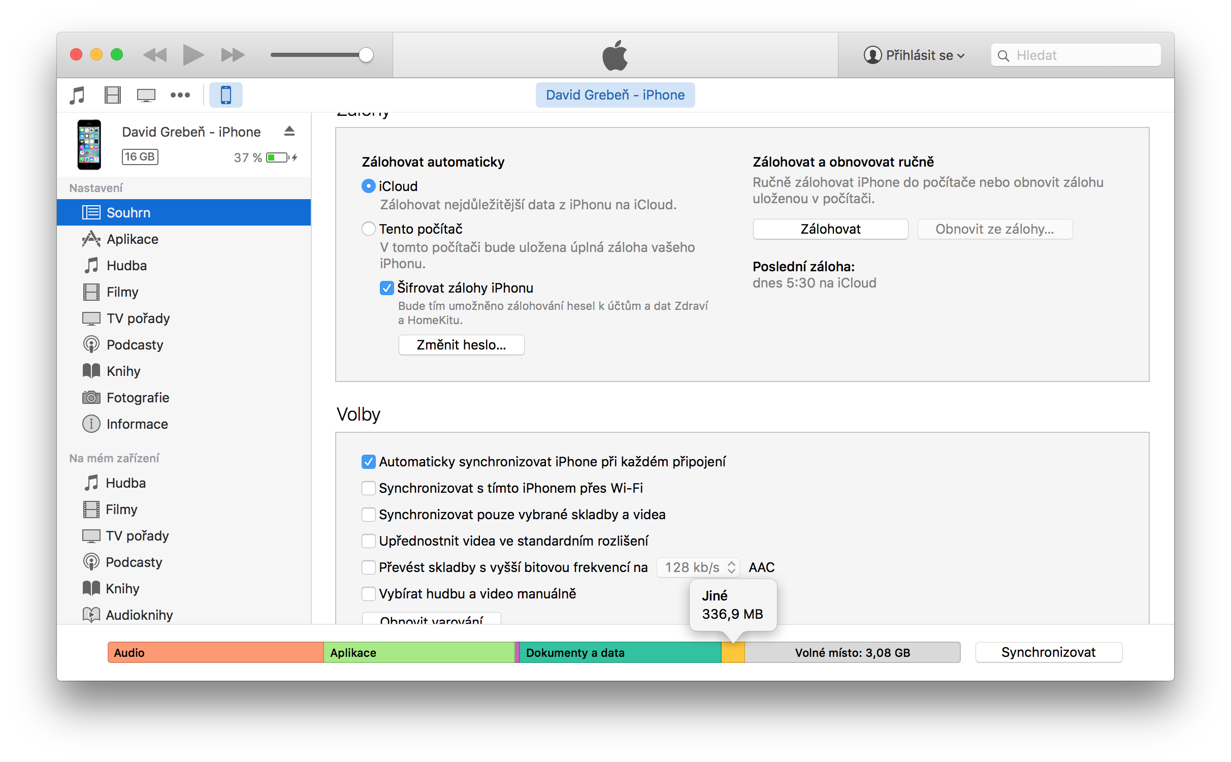 Většina uživatelů spravuje úložiště ve svém iPhonu přes aplikaci iTunes, ve které po připojení lze vidět, co kolik dat zabírá. Avšak žlutě označená položka Jiné je pro většinu uživatelů záhadou. Jedná se o systémovou složku, která už po prvním zapnutí zabírá jedno až pět procent z celkové kapacity zařízení. Velikost se může ale po několika měsících změnit v několik gigabajtů. K čemu kategorie slouží a co v sobě ukrývá za položky? Pojďme si ji trochu přiblížit a říct si, jak jí nejvíce zmenšit.