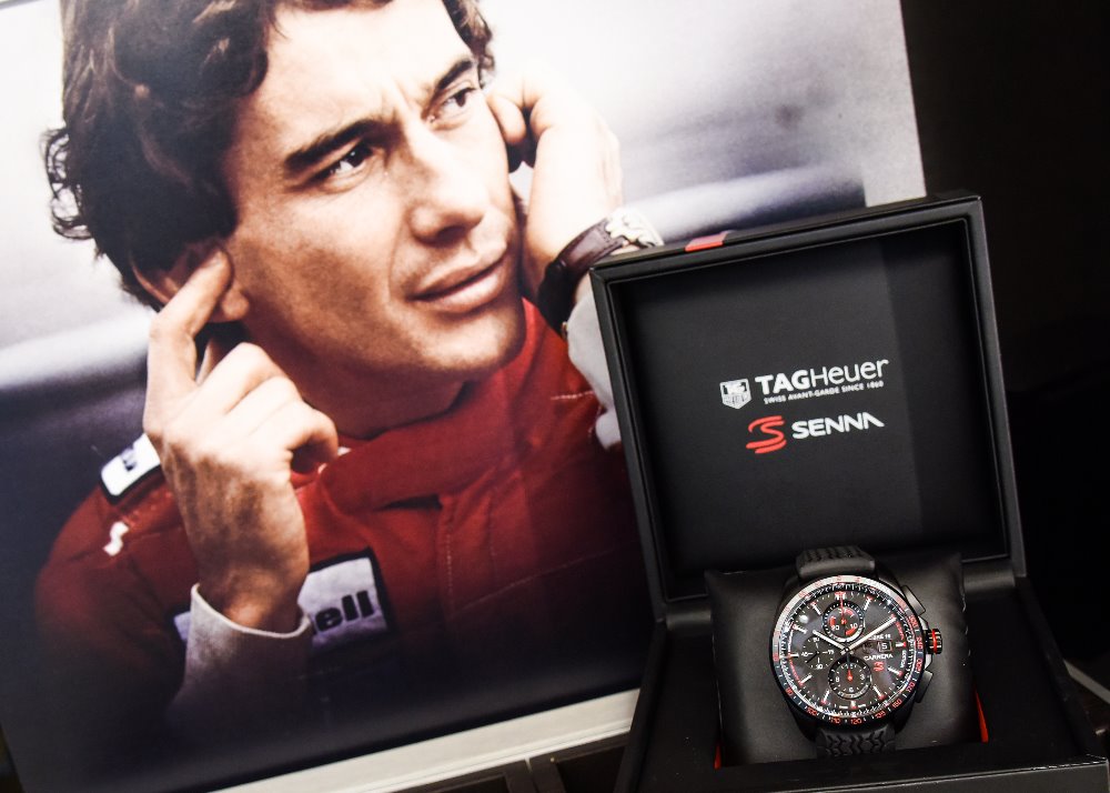 Od roku 1988 až do onoho tragického roku 1994 spojila značka TAGHeuer svoji marketingovou strategii s jeho jménem. Aktuálnězní název kampaně TAGHeuer “Don’t Crack Under Pressure”-nejen toto slovní spojení charakterizuje povahu A. Senny. Byl jedním z mužů, který tlaku nikdy nepodléhal. Kdo znal jeho řidičské umění ví, o čem je řeč.