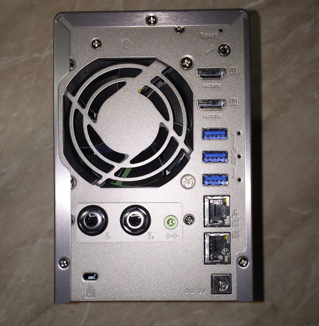Model je TS-253A-4G, ktorý obsahuje Intel Celeron 1.6GHz quad-core procesoro a ako názov naznačuje je to model so 4GB RAM čo je absolútne postačujúce nakoľko veľa NASiek má 1 alebo 2 GB pamäte. Vo všeobecnosti NAS servre QNAP disponujú väčšou kapacitou RAM, ktorá je užívateľsky rozšíriteľná, nakoľko umožňujú plnú virtualizáciu operačných systémov Windows, Linux, Unix a Android. NASko disponuje napájacím portom pre 12V, dva gigabitové Ethernet porty, 4 USB 3.0 porty, dva HDMI porty s podporou 4K rozlíšenia a ako čerešnička na torte sú tu dva 6,3 mm jacky pre dynamické mikrofóny a jeden Line-out jack pre zosilňovač ktoré sú určené pre karaoke.