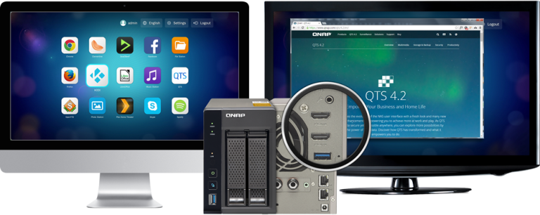 Ovládač slúži na obsluhu NASka pripojeného k TV alebo k monitoru, dajú sa ním ovládať multimediálne funkcie. Nakoľko server umožňuje beh viacerých systémov beží QTS(hlavný OS servera) a zároveň linuxová stanica ktorá môže ísť tak isto ako cez dve HDMI aj cez webové rozhranie. Dokonca je možné pripojiť aj klávesnicu a myš. Cez webové rozhranie je možné pracovať ako s klasickým NAS serverom, konfigurovať rôzne služby a podobne. Cez HDMI dostávame výstup z druhého OS, ktorým je linux, je možné ho využiť ako multimediálne centrum po pripojení k TV alebo ako pracovnú stanicu vďaka funkcii QvPC, na ktorý je možné pristupovať aj cez vzdialený prístup cez webové rozhranie. Nakoľko server disponuje dvoma HDMI je možné dokonca pripojiť súčasne dva monitory, ktoré sa dajú nastaviť buď na zrkadlenie obrazu alebo ako rozšírenie pracovnej plochy. Ďalšia vec ktorú server zvláda cez HDMI a linuxovú stanicu je IoT (Internet of Things) alebo Internet vecí.