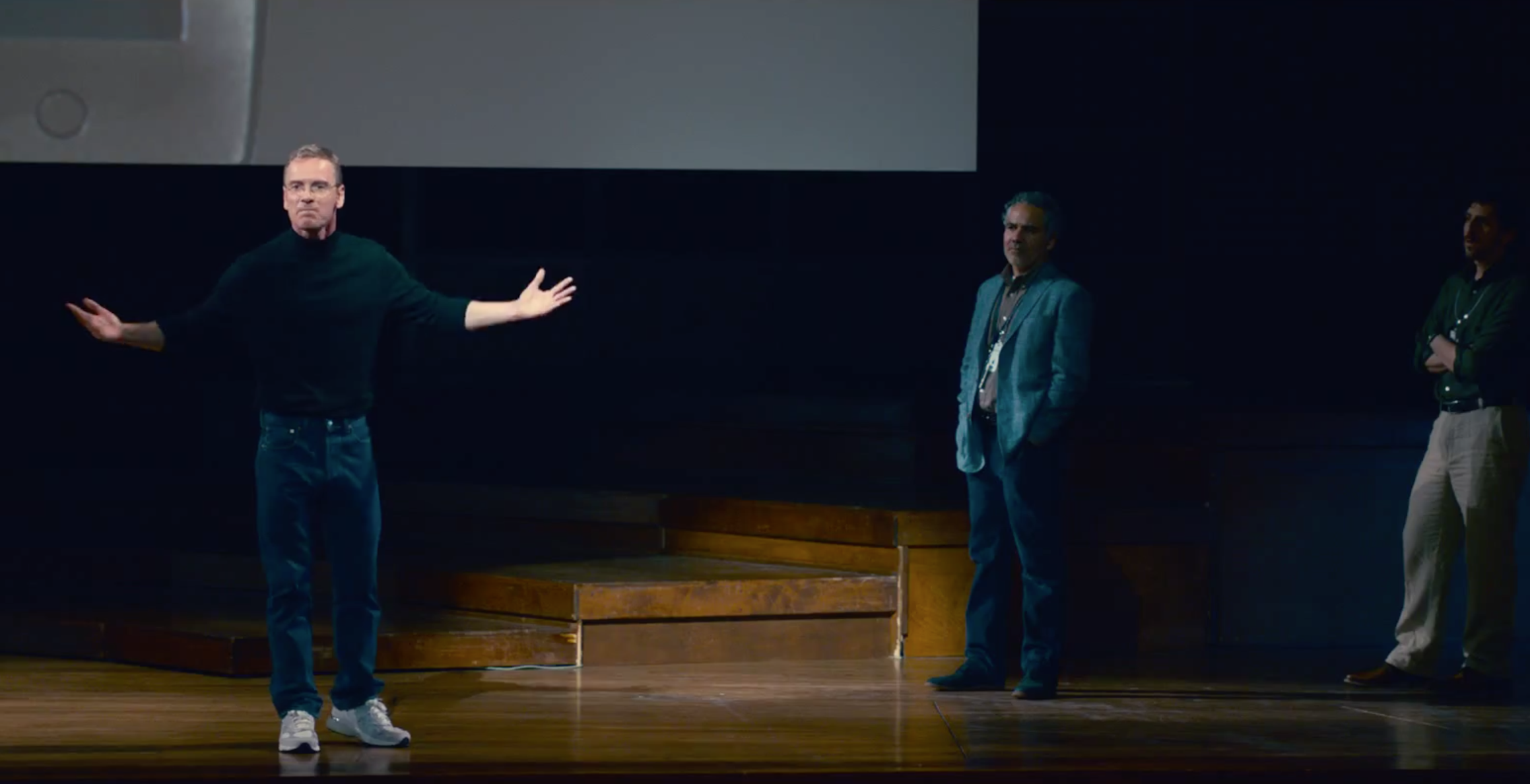 Jsme nesmírně vděčni za knihu Waltera Isaacsona i za hlubokou komplexnost jeho výzkumu, ale chtěli jsme, aby film měl trochu jiný směr. Sorkin popisuje film jako „impresionistický portrét“. Jsou tam myšlenky, které zjevně pocházejí ze skutečného života, ale samotný film je abstrakce. Vybírá události – některé z nich skutečné, některé z nich smyšlené – a rozdělí je do třech období, představení Macintoshe v roce 1984, NeXTcube v roce 1988, a iMac v roce 1998. Šest postav se objeví třikrát, 40 minut před předvedením každého produktu, a prostě se jen střetává jedna s druhou. To není skutečný život; to je jakási vyšší verze skutečného života.