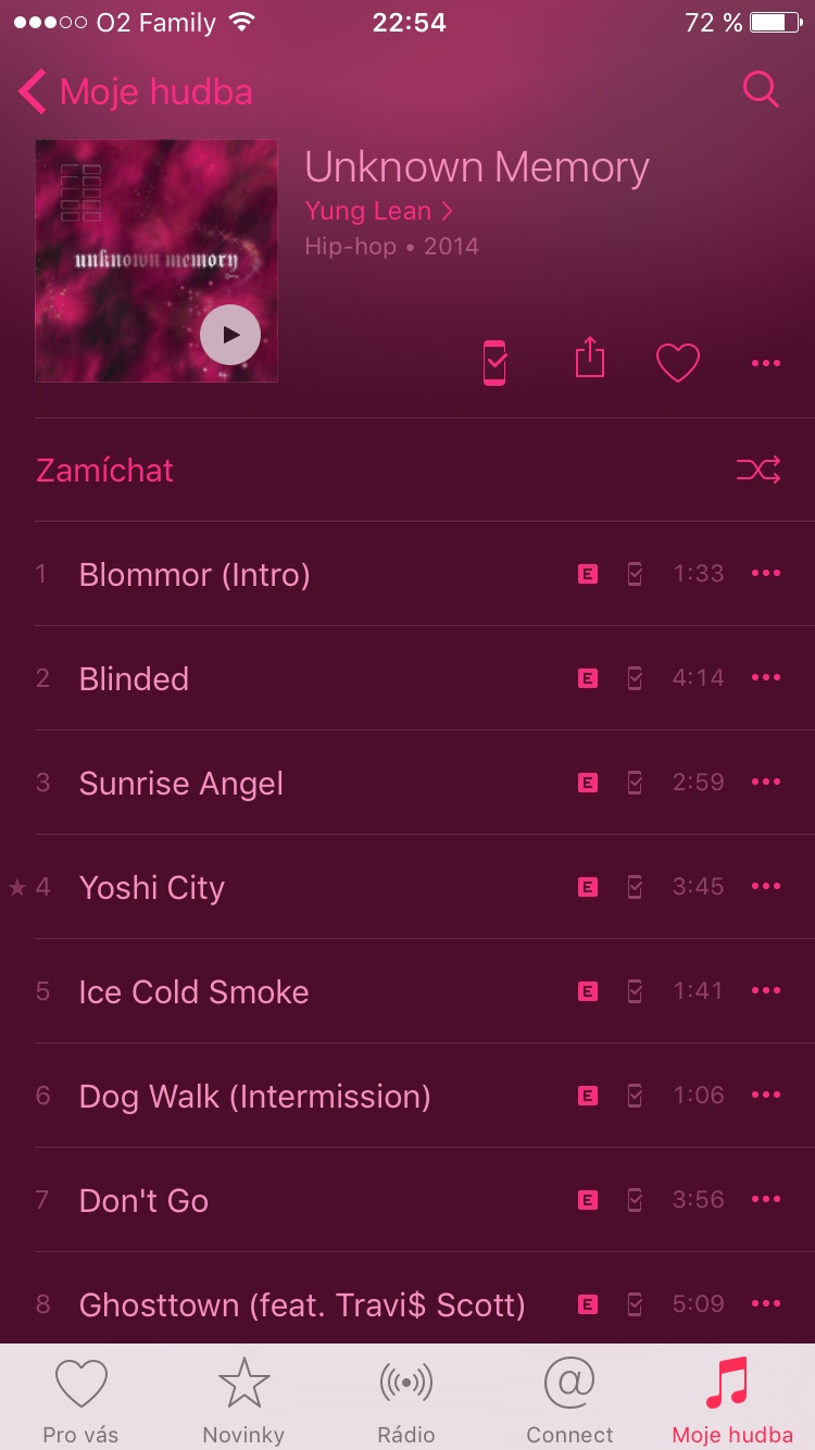 2) Nové znázornění popularity skladby v aplikaci Hudba