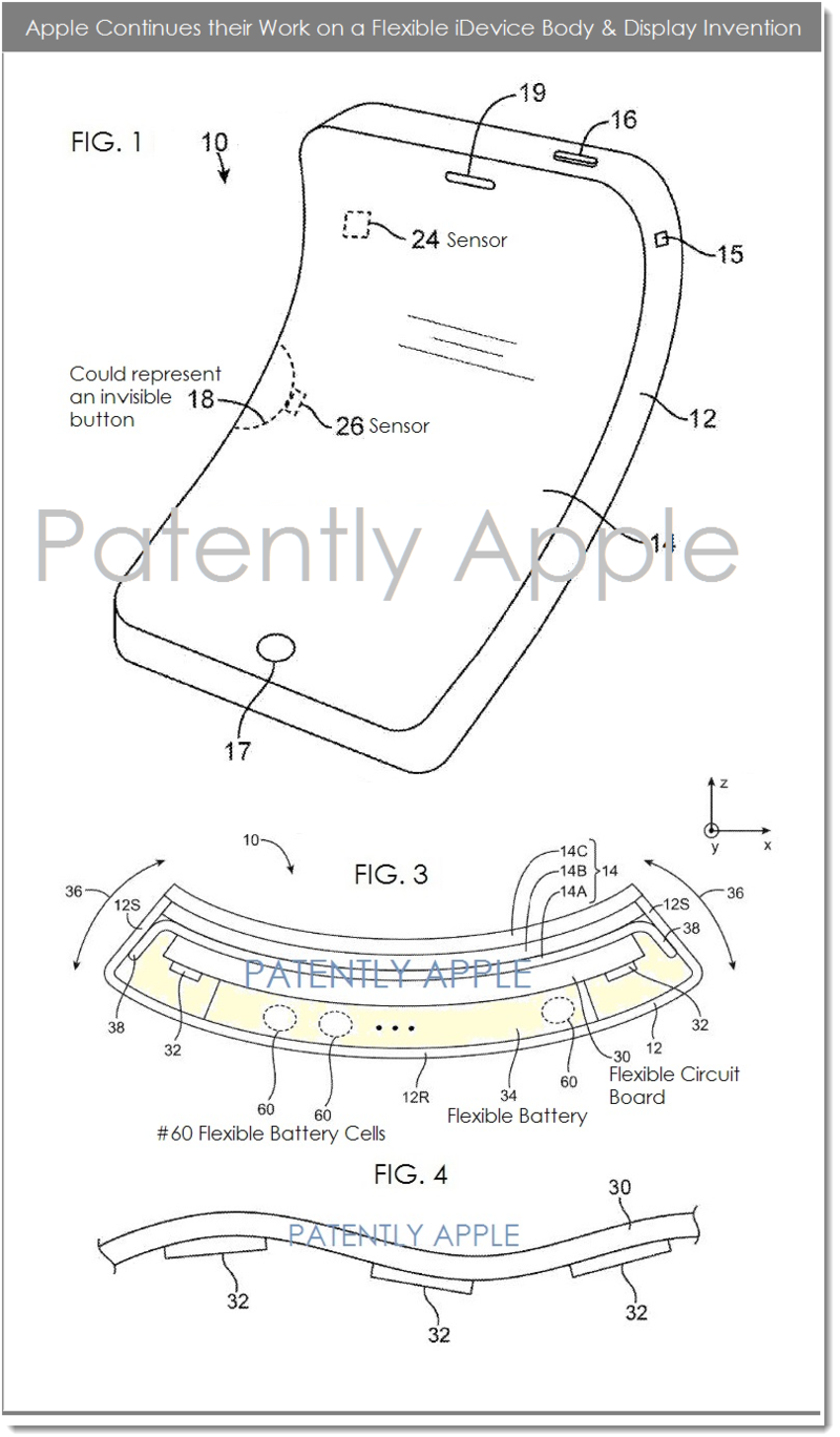Applu bylo dnes uděleno 54 nových patentů americkým patentovým úřadem, z nichž jeden obsahuje podrobnosti o flexibilním OLED displeji pro možný budoucí iPhone. Patent s názvem “Flexibilní elektronické zařízení”, se vztahuje na produkty, které by obsahovaly pružné kryty a vnitřní komponenty, včetně flexibilní verze Organic Light Emitting Diode (OLED) displeje, uvedl server Patently Apple.