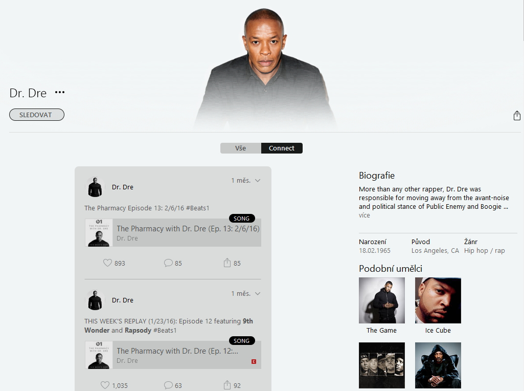 Tisíce dalších interpretů však přidali na Apple Music Connect poslední příspěvek minulý rok nebo vůbec. Otázkou zůstává, proč se síť Connect stala bez obsahu. Podle všeho za špatnou situací stojí horší hledání Connectu na Macu nebo Windowsu. Pokud budete interpreta vyhledávat v iTunes ve většině případů skončíte na iTunes profilu, který je odlišný od toho na Apple Music. Prokliknout se do Connectu lze přes záložku Apple Music.