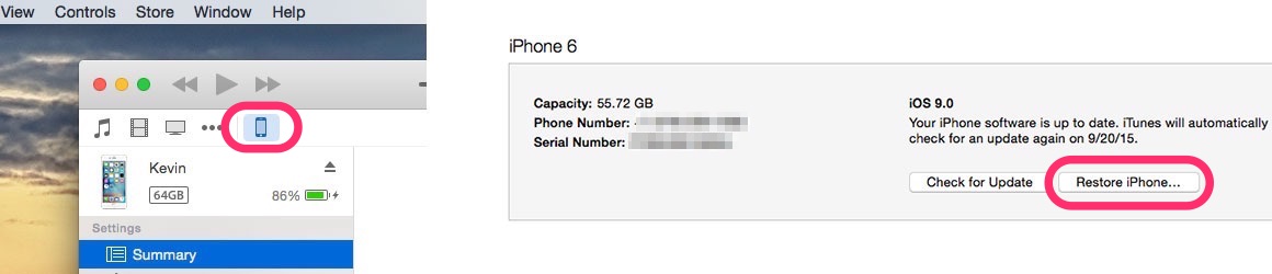 4. Obnovení pomocí iTunes