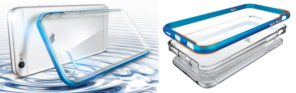 Toto pouzdro se skládá ze dvou částí – průhledný TPU materiál a pevný polykarbonátový rám. TPU materiál zajistí dokonalé obepnutí iPhone a jeho flexibilita pomáhá k lepšímu absorbování nárazů. Barevný rám z pevného polykarbonátu dodává celému pouzdru ještě větší odolnost. Výrobce neuvádí přesnou hodnotu, z jaké výšky dokáže pouzdro ochránit iPhone, ale vzhledem k jeho konstrukci nebude mít problém s výškou 80 – 100cm. Přední přesah pouzdra chrání i displej iPhone při položení na rovný povrch. Téměř vůbec nenaruší design iPhone, přes průhledný TPU materiál je vidět zadní část iPhone s Apple logem a jinými designovými prvky. Navíc jeho štíhlé provedení nepřidává telefonu příliš na tloušťce. Tlačítka jsou chráněna kovovými krytkami a všechny porty jsou volně přístupné.