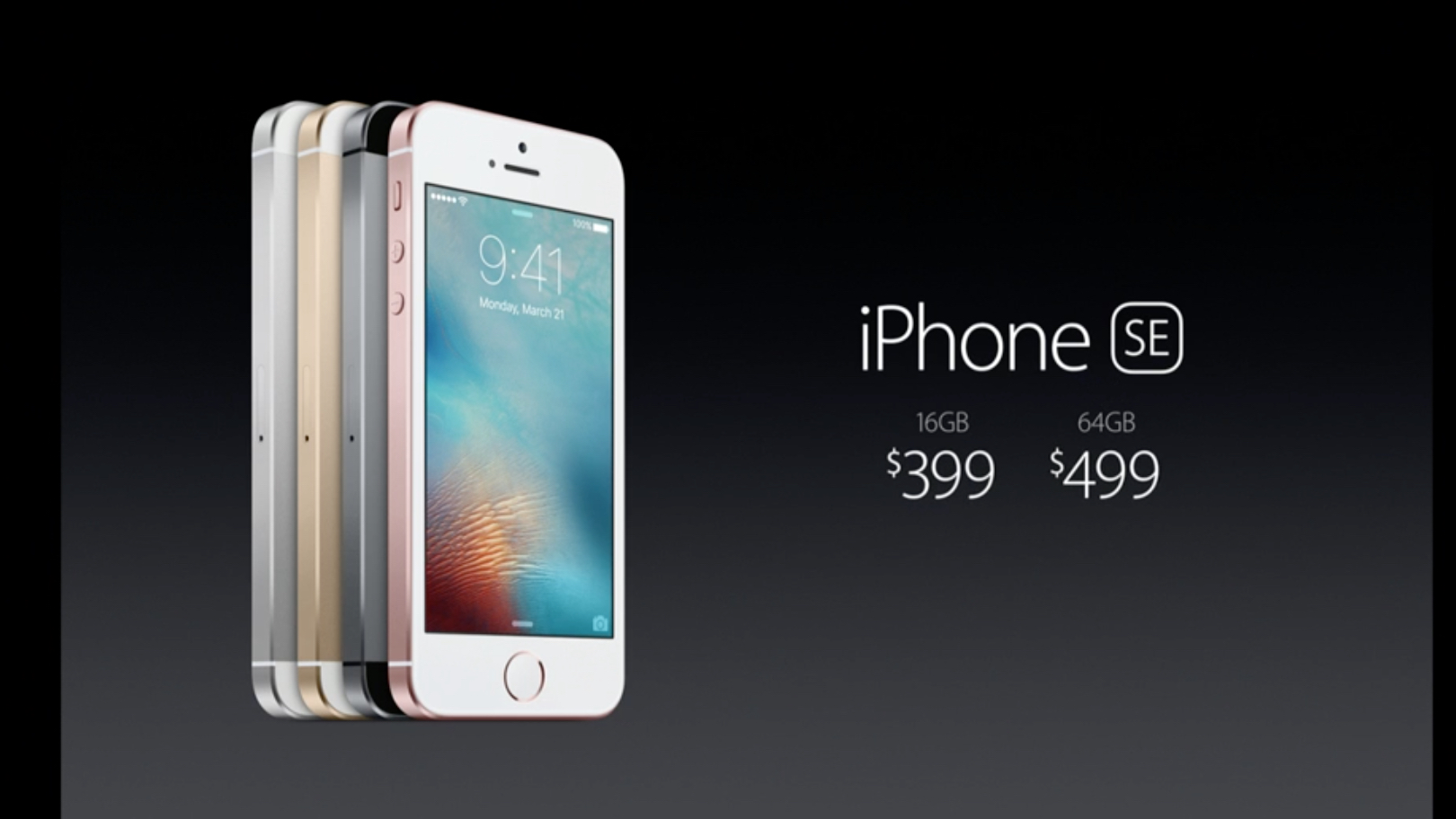Co potěší potenciální zákazníky asi nejvíce, je rozhodně jeho cena. iPhone SE začíná na 399 dolarech, což je mimochodem nižší cena, než za kterou se doposud prodával starý iPhone 5s v 16GB variantě. Za 64GB chce kalifornský gigant 499 dolarů, což je poměrně příjemné, protože za tuto částku se prodával 32GB iPhone 5s.