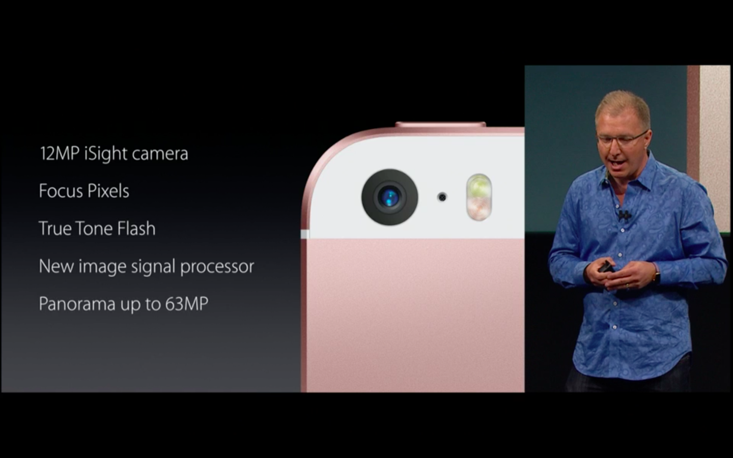 To, co případné zájemce o 4″ iPhone SE rozhodně potěší, je lepší fotoaparát. iPhone SE totiž disponuje 12-megapixelovým fotoaparát s 1,22µ pixely a clonou ƒ/2,2, který byl převzat iPhonu 6s. Nový iPhone tak umí pořizovat Live Photos a hlavně natáčet videa ve 4K (3840 × 2160) rozlišení při 30 fps respektive 1080p HD video až při 60 fps. Zpomalené video pak zvládne pořizovat v rozlišení 1080p při 120 fps nebo v rozlišení 720p při 240 fps.