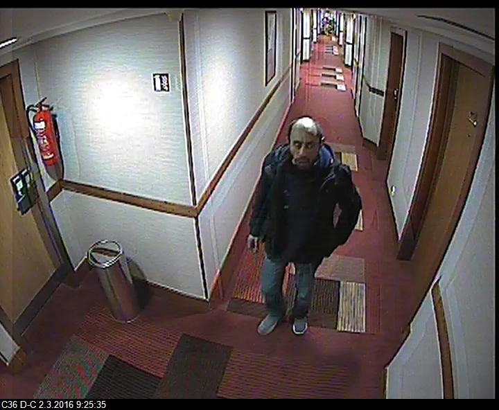 „Od středy 2. února 2016 pátrají policisté z místního oddělení Karlín po pachateli, který se vloupal do dvou pokojů jednoho z hotelů v Praze 8. Pachatel se do pokoje dostal zatím nezjištěným způsobem, aniž by poškodil dveře. Následně z pokojů, které byly propojeny průchozími dveřmi, odcizil dva mobilní telefony IPhone 6, z nichž jeden byl pozlacený v hodnotě 200 tisíc korun. Dále si odnesl tři mobilní telefony Samsung a hodinky značky Gant. Celkově tak majiteli způsobil škodu ve výši téměř 300 tisíc korun. Podezřelého muže, který se pohyboval po chodbách hotelu, zachytily bezpečnostní kamery. Jestliže ho poznáváte, kontaktujte linku 158. Za trestný čin krádež hrozí pachateli v tomto případě až pětiletý trest odnětí svobody, jelikož svým jednáním způsobil větší škodu,“ uvedl mluvčí Policie ČR Jan Daněk.
