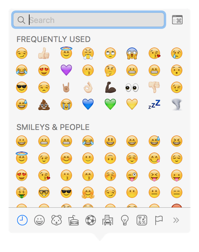 Podél dolní části výběrového okna jsou malé ikony zkratek, které vám umožní rychle najít emoji, po kterém zrovna toužíte.