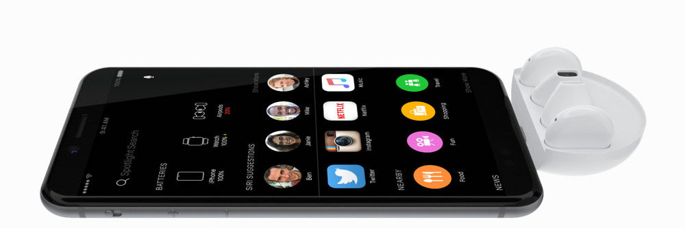 Absenci 3,5mm jack konektoru vyřešil Majdy tak, že navrhl zcela nová, skutečně bezdrátová , sluchátka Airpods. Ta přichází s integrovanou baterií, díky které sluchátka vydrží až 2 hodiny nepřerušovaného přehrávání. Nic oslnivého, ale v případě Applu dost reálného. Airpods se dobíjí přes MagSafe, který využívá stejnou technologii bezdrátového nabíjení, jako Apple Watch. Malou výdrž vykompenzuje rychlé nabíjení, kdy pouhých 30 vteřin stačí na 10 minut poslouchání hudby.