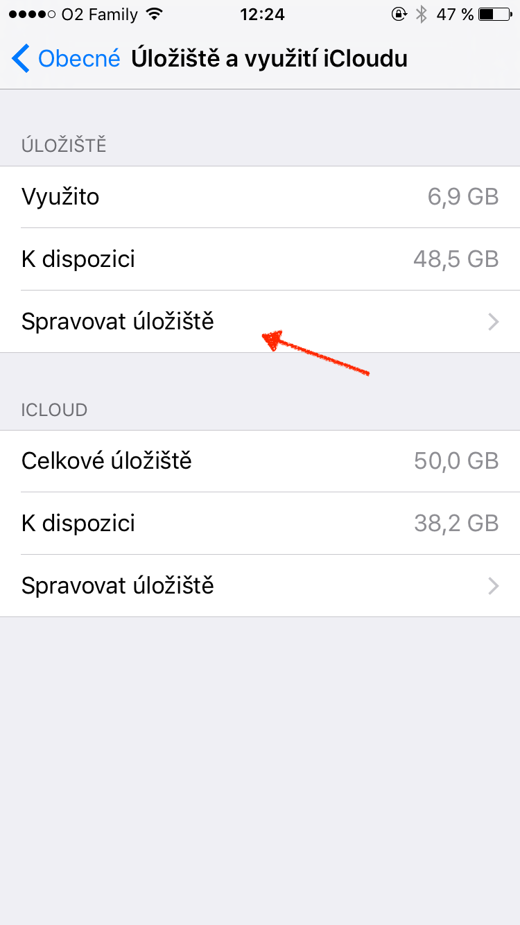 2. Jděte do Nastavení –> Obecné –> Úložiště a využití iCloudu