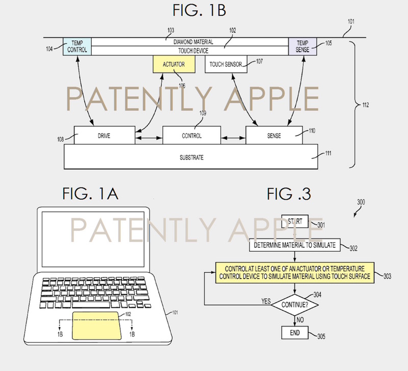 Applu byl dnes udělen patent na vynález, který by umožnil touchpadu či dotykovému displeji simulovat nějakou texturu včetně její teploty. Například pokud by tam byl nějaký kov, plocha by byla studená. Patent byl původně podán již v roce 2013 a dostal název „Touch Surface for Simulating Materials.“ Objevuje se v dalších 62 patentech a zahrnuje podrobnosti o mechanismech, které by umožnily touchpadu či dotykovému displeji vytvarovat podobu textury a měnit teplotu.
