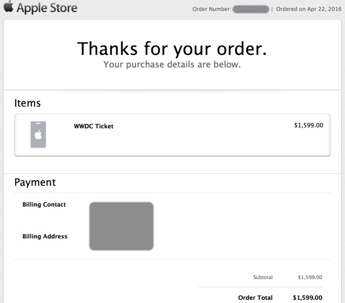 Vývojáři se mohli registrovat na WWDC 2016 od pondělí 18. dubna až do 22. dubna. A nyní Apple začal pomalu rozesílat některým vývojářům „výherní“ e-maily s informací o tom, že se na WWDC 2016 dostali, a že jim budou z účtu strženy peníze nebo vystavěna faktura. Apple sdělil, že všechny e-maily by měly být odeslané do 25. dubna.
