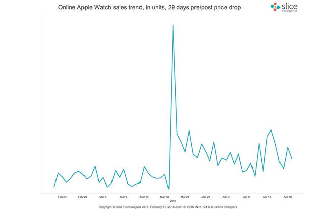 Apple po březnové Keynote snížil cenu svých hodinek Apple Watch na 299$. Krátce poté, byly sníženy ceny i v českém Apple Online Storu. Od března tedy koupíme nejlevnější Apple Watch Sport v 38mm variantě za 9 490 Kč a 42mm varianta vás v případě zájmu vyjde na 10 990 Kč. Kalifornská společnost tak zlevnila Apple Watch Sport o 1500 Kč. Podle společnosti Slice Intelligence, se jednalo o velice dobrý tah, a denní prodeje Apple Watch jsou 2,5krát větší, než byly před samotném zlevněním hodinek. Apple ale slaví více úspěchů.