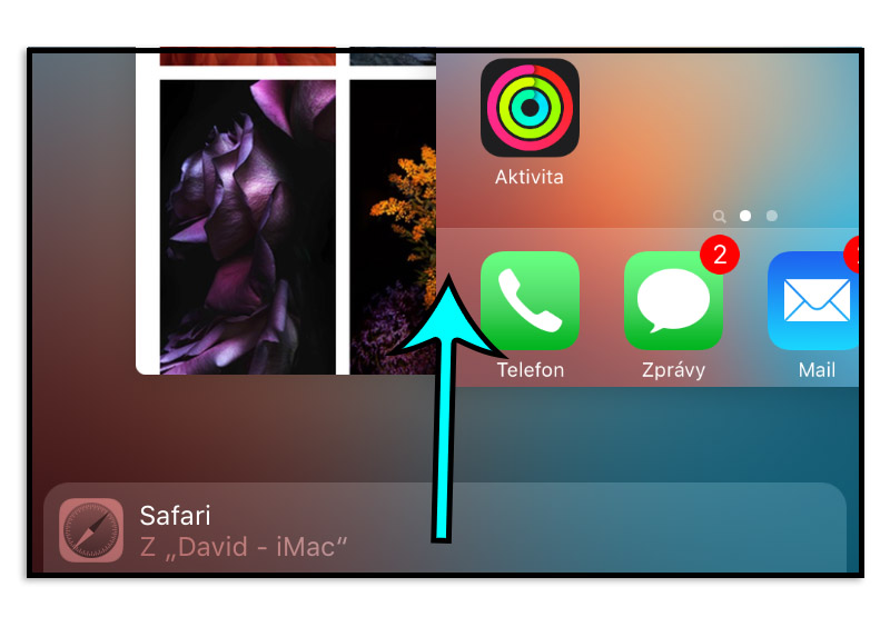 Velkou novinkou v zařízeních se systémem iOS 9 je takzvané rychlé předávání stránek. Je-li na iPhonu a i Macu zapnuté Bluetooth a zařízení jsou u sebe, funguje předávání stránek opravdu jednoduše. Měl bych ještě podotknout, že obě dvě zařízení musí být přiřazeny ke stejnému Apple ID. Pak již stačí dvakrát stisknout Home Button, a ve spodní části by se měl zobrazit panel „Safari“ ve kterém uvidíte název vašeho Macu. Panel stačí jednoduše vytáhnout nahoru, tím se Safari a aktuálně prohlížená stránka na Macu otevře.