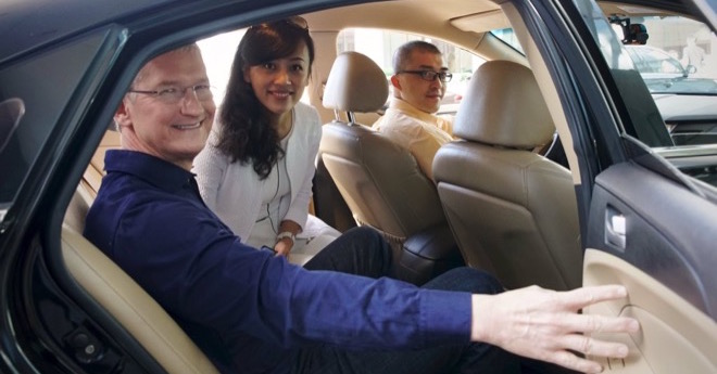 Tim Cook znovu navštívil Čínu a začal celou návštěvu tím, že se setkal s některými vývojáři a vysoce postavenými lidmi, kteří stojí za službou Didi Chuxing, což je velký soupeř Uberu a aktuálně službu využívá více než 300 milionů uživatelů, přičemž více než 11 milionu jízd v Číně je zprostředkována pomocí Didi Chuxing. Apple do zmiňované služby/společnosti investoval jeden milion dolarů. Službu Tim otestoval a automobilem Didi Chuxing dorazil i do Apple Store, který se nachází v Wangfujingu. Ve zmiňovaném Apple Store se konal seminář, na kterém vystoupil kromě Tima Cooka i CEO Didi Chuxing – Jean Liu.