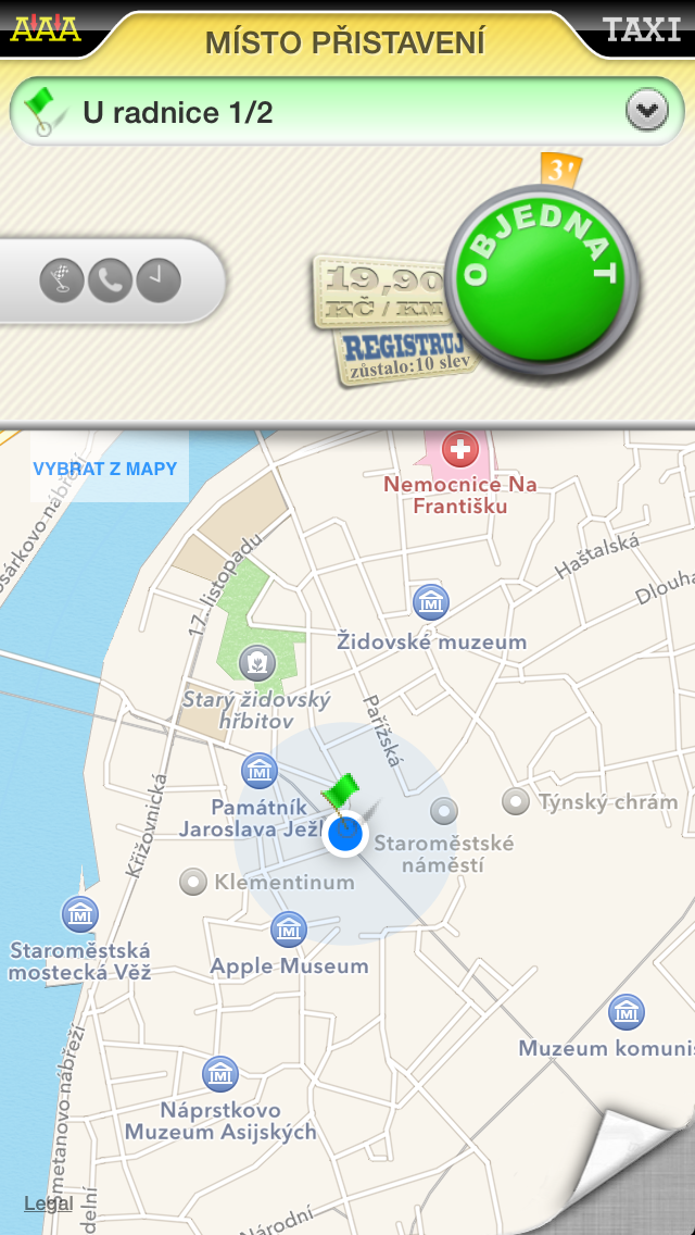 Největší pražská taxislužba AAA Taxi má pro všechny majitele iPhonů vychytanou mobilní aplikaci na rychlé přivolání taxi. Je zcela zdarma a pomůže vám snadno objednat vůz kdekoliv po Praze. Aplikace využívá informace o vaší aktuální poloze, a proto nemusíte pro objednání vozu ani znát přesnou adresu místa odkud taxi objednáváte.