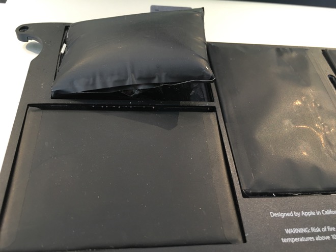Modernizácia batérií vo všeobecnosti spôsobuje na jednu stranu pozitíva ako je dlhšia výdrž a menšia hmotnosť a rozmery. Na druhej strane však batérie nemajú tak dlhu životnosť akú mali pár rokov dozadu. Našťastie je operačný systém navrhnutý tak, aby dokázal komunikovať s batériou a včas vás upozornil na nutnú výmenu. Pokiaľ to budete ignorovať, môže nastať poškodenie batérie až do fázy, keď sa doslova nafúkne. Keďže zvyšné miesto v macbooku hľadať len ťažko, batéria môže poškodiť telo macbooku. Najčastejšie vytlačí spodnú časť tela, v horšom prípade touch pad a poškodí ho.