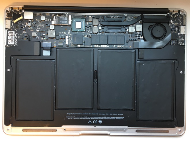 Na obrázku je vidieť že veľkú časť „vnútorností“ tvorí batéria a to je len ďalšia ukážka toho, ako by to malo vyzerať. Väčšia batéria znamená väčšiu výdrž, u najnovších macbookoch to je viac než 12hodin.