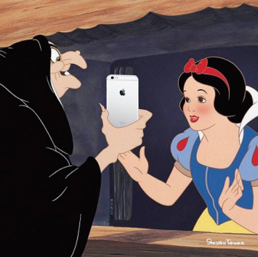 Japonský ilustrátor Shusaku Takaoka se podíval na to, jak by vypadala popelka, kdyby ji dala zlá královna místo klasického jablka iPhone.