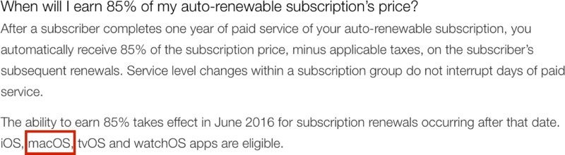 Název macOS se v poslední době objevuje čím dál víc. Ať už se jedná o stránky Applu, nebo texty v iTunes, společnosti tento název „uniká“ čím dál víc. Nejaktuálněji se objevil v dokumentu, který se zabývá výdělky z AppStoru, konkrétněji v sekci otázky a odpovědi. Termín macOS je zde uveden po boku svých ostatních OS sourozenců.