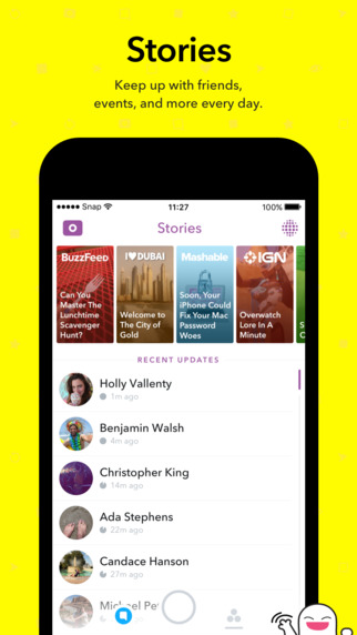 Snapchat je také celkově o dost plynulejší, rychlejší a přehlednější. Tímto updatem můžeme sledovat, že Snapchat se díky Facebooku stále vyvíjí a snaží se upřednostnit požadavky svých uživatelů. Hybnou silou jsou právě odběry známých kanálů, jako je například Buzzfeed nebo MTV. Z reklam těchto kanálů má totiž Snapchat příjem.