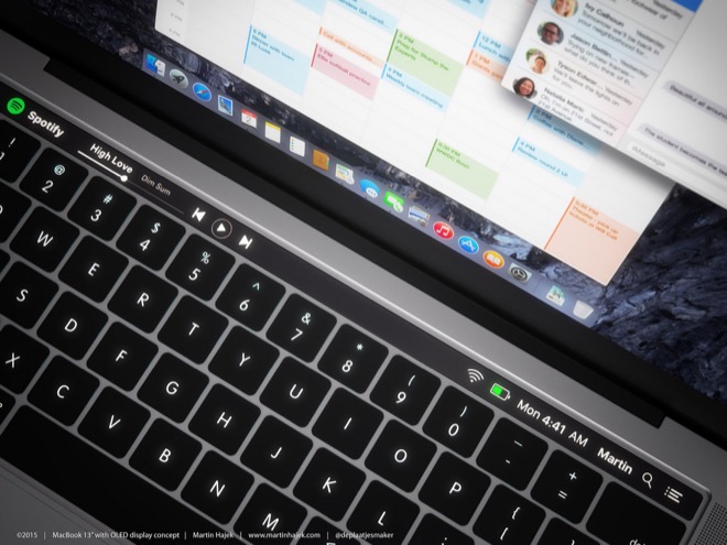 Pár týdnů už od spolehlivých zdrojů víme, že chystaný MacBook Pro nabídne zcela přepracovaný design a jednou z největších novinek by měl být OLED panel nad klávesnicí, který bude dotykový a nahradí současné klávesy F1 až F12. Informace dokonce potvrdil i jeden únik fotografií šasi chystaného MacBooku, a tak už s ním všichni tak nějak počítají. OLED panel by měl být softwarově přizpůsobitelný, což znamená, že jednou by se na něm měly zobrazovat klávesy F1 až F12, Esc a možná i tlačítko pro vypnutí/uspání MacBooku (doufejme ale že ne) a jindy by se na něm ukázaly speciální klávesy například pro Spotify, Photoshop, Pixelmator, iTunes nebo třeba pro Siri, kterou by měl Apple už v pondělí představit, tedy její desktovou verzi pro OS X.