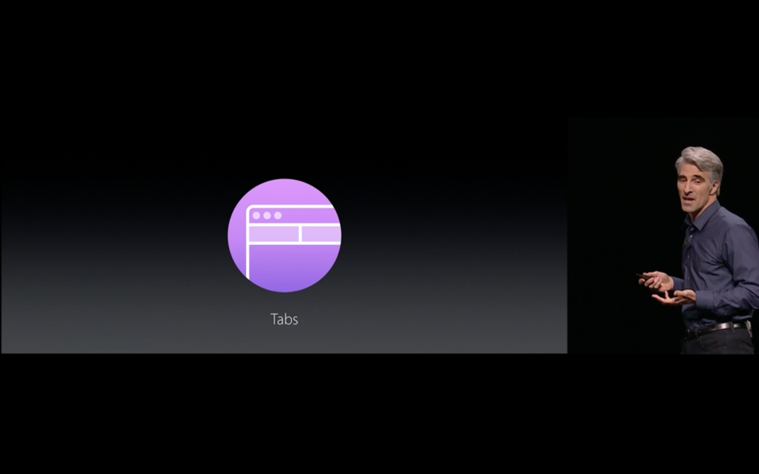 Součástí nového macOS je také funkce, která se jmenuje „Tabs“, díky funkci budou panely dostupné nově naprosto ve všech aplikacích. Apple potěší hlavně vývojáře, protože ti nemusí hnout ani prstem a i přesto budou panely naprosto všude. Jednoduše řečeno, se panely otevírají místo oken.
