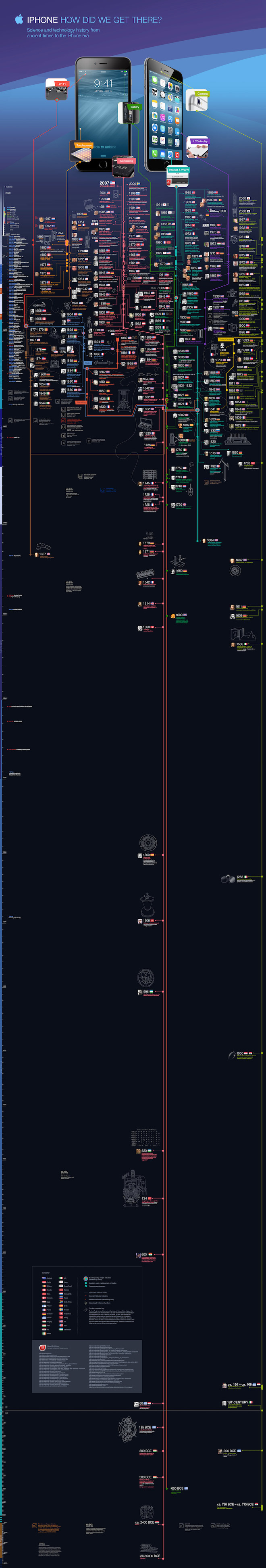 Grafika je vertikálně chronologicky seřazená, tudíž na spodní straně je její počátek zhruba v období 40 000 let před naším letopočtem. První konkrétní datová zmínka je pak z období kolem 35 000 let před naším letopočtem, která se týká schopností uchovávat text a jiné informace. Z tohoto bodu se postupně větví monumentální strom, ve kterém se postupně odkrývají nové vědecké vynálezy a milníky lidstva, které ho nějakým způsobem posunuly dál. Ve spodní části vlevo je pak umístěna legenda. V 17. století se pak začíná graf opravdu hodně větvit a do té doby přehledná grafika se stává obrovským shlukem informací. Vše pak vede k roku 2007 a vydání prvního iPhonu. Dost již slov, přesvědčte se o tom sami. Je to opravdu impozantní kus práce.