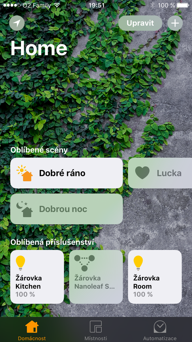 Nyní ale, po příchodu iOS 10 a nové aplikace Home, je možné se aplikaci Nanoleaf v podstatě vyhnout. Aplikace Home je totiž naprosto skvělá a posouvá ovládání HomeKit příslušenství na úplně jinou úroveň, tedy alespoň v případě Nanoleaf tomu tak rozhodně je. V iOS 10 totiž i přímo na uzamčené obrazovce můžete zespodu vysunout ovládací centrum, odkud můžete ovládat všechny žárovky (i další HomeKit příslušenství), upravovat jim plynule jas pomocí 3D Touch a dokonce aktivovat i scény. I v samotné aplikaci Home se žárovky ovládají lépe a vše je tak nějak přehlednější. Pár nevýhod ale přeci jen Home má – nelze žárovkám aktualizovat firmware a nelze například ztlumit světlo na Hubu. Stále tak je potřeba mít oficiální Nanoleaf aplikaci nainstalovanou, ale používat jí v podstatě nebudete.