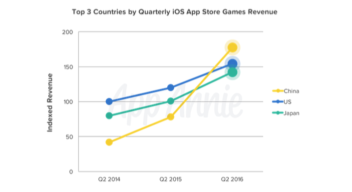 Kromě Číny je také zajímavý fakt, že na pozici USA se také pomalu ale jistě dere Japonsko, které svými výsledky trh v USA dohání. Není to nějaké závratné tempo, ale meziročně je to více než jasné. Podle analytiků z App Annie je velice reálně, že v následujících několika letech bude celkový výnos (nejen tedy pouze z her) z čínského trhu vyšší než ten americký.