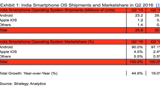 Navíc prodeje měl zachránit iPhone SE a jak se zdá, příliš tomu nepomohl. Čísla která vykazuje Apple v Indii jsou o to horší v porovnání s tím, že Indický trh meziročně vzrostl o 19% a celkově se v indii prodalo jen v průběhu druhého čtvrtletí roku 2016 více než 31 milionů smartphonů, z nichž pouze 800 000 patří Applu. Neuvěřitelných 97% těchto smartphonů používá operační systém Android.