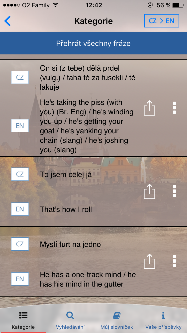 Aplikace je ke stažení zcela zdarma a nenajdete v ní ani žádné reklamy. V LingoNative jsou desítky frází zdarma a pokud by vám to nestačilo, můžete si přikoupit další. Celkem více jak 3400 nových frází vás vyjde na 9,99 € (přibližně 270 Kč). Přikupovat fráze ale můžete klidně jen do vybraných kategorií. Cena za jednu kategorii je pak pouhých 0,99 € (přibližně 27 Kč).