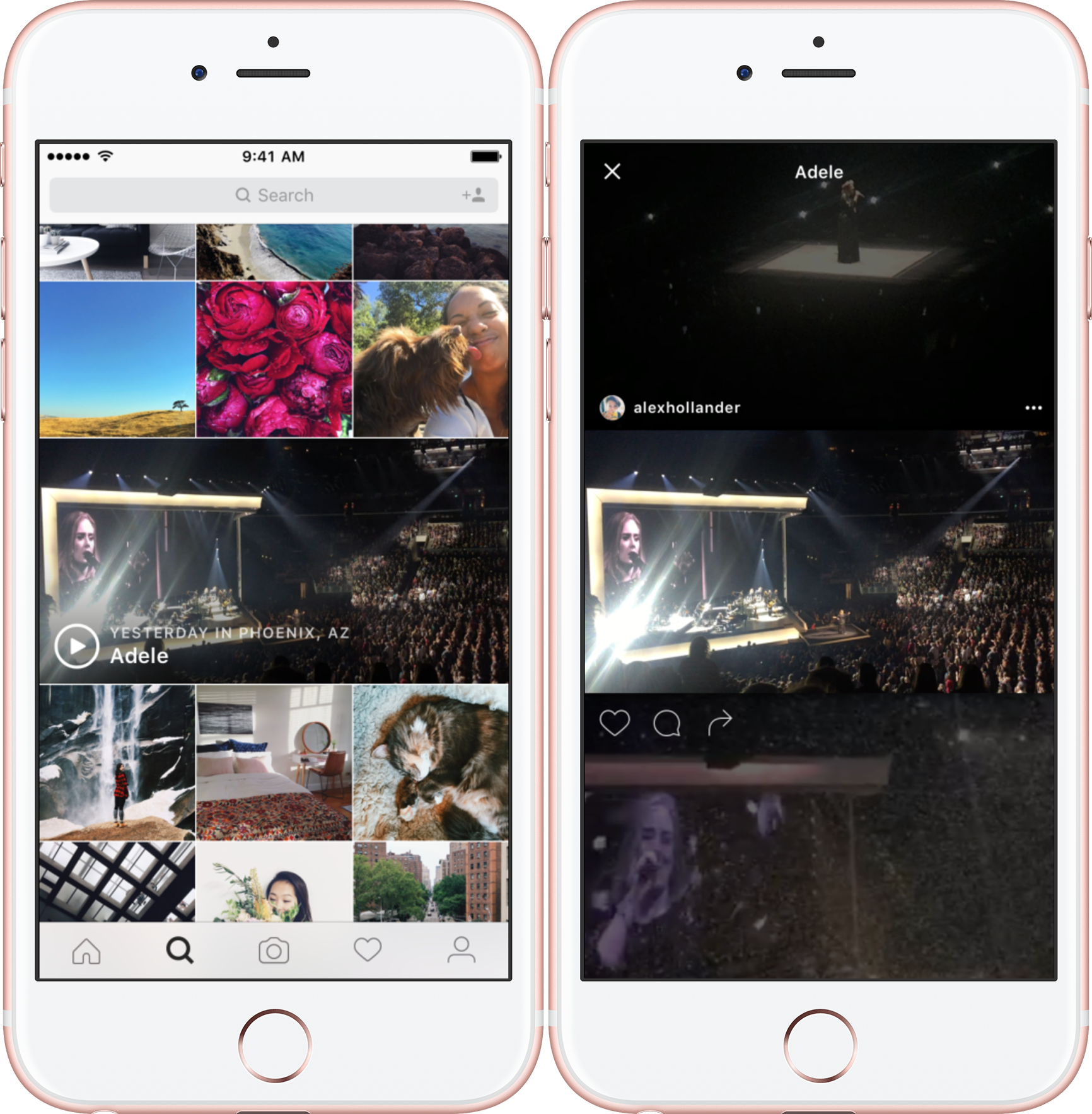 „Tento kanál sbírá ty nejlepší videa z koncertů, sportovních událostí a dalších dění, abyste se mohli cítit, jako když stojíte v první řadě. Jako celý zbytek záložky Explore je i tento kanál uzpůsoben vám a zobrazuje události, které by vás mohly zajímat,“ stojí na blogu Instagramu.