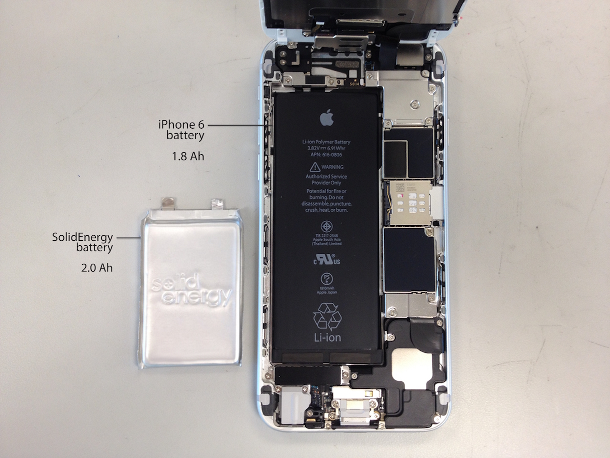 *První vyrobená Li-Metal baterie z roku 2015 měla větší kapacitu než baterie v iPhone 6, ovšem její velikost byla poloviční.