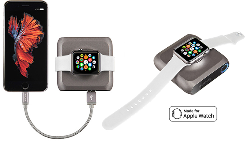 Jedná se o produkt značky Kanex, který se nazývá GoPower Watch. Ve své podstatě jde o klasickou power banku, která disponuje kapacitou 4000 mAh, zachovává si kompaktní rozměry a podporuje bezdrátové nabíjení (1A/3,70V). Obsahuje stejný magnetický konektor, jaký je dodáván k chytrým hodinkám od Applu. Mimo to však power banka také dokáže nabít ještě jedno Apple zařízení, jelikož disponuje klasickým USB portem a v balení se nachází USB-Lightning kabel. Při nabíjení telefonu je ovšem nutné počítat s omezenou kapacitou.