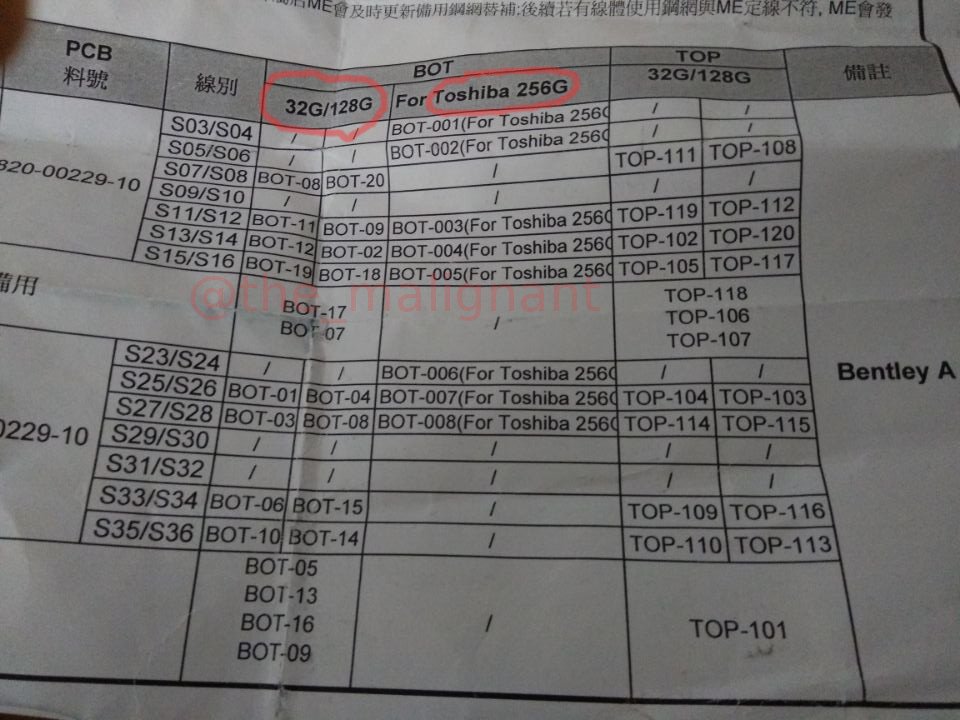 Obrázek pochází od známého zprostředkovatele úniků, který si říká The Maligant. Jedná se o jakousi tabulku, ve které jsou rozepsány kódová označení pro komponenty telefonu, zejména pak paměťové moduly. Z obrázku je patrné, že se dočkáme třech variant – 32, 128 a 256GB. A také to, že výrobcem bude Toshiba, která stojí například za SSD disky značky OCZ. Můžeme tedy očekávat, že paměťové moduly budou vyrobeny 15nm MLC NAND technologií a s telefonem budou komunikovat přes NVMe rozhraní, které se v iPhonech poprvé objevilo loni, a způsobilo rychlostní „revoluci“.